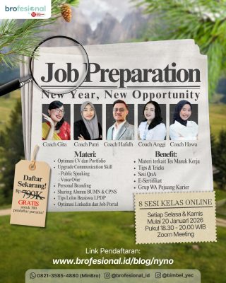 Hallo Pejuang Karier, Happy New Year 2026! β¨MinBro mau kasih info nih, buat kalian yang mau serius persiapan kerja dan studi lanjut tahun ini ππ«΅πΌ Yuk, segera daftar Program Job Preparation bareng Brofesional! π Daftar sekarang GRATIShttps://brofesional.id/blog/nyno Program Bimbingan Job Preparation akan dilaksanakan:π 20 Januari β 12 Februari 2026π‘ Pukul